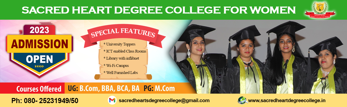 Sacred Heart Degree College For Women was established on 15th June, 2005. It is a Catholic minority institution of higher education for women and is affiliated to Bangalore University. It is under the management of the Society of Sisters of St.Anne-Madras, a Cahtolic Religious Congregation founded by Servant of God, Thatipathri Gnanamma in Kilacheri, 40 km away from Chennai, Tamilnadu in 1874.